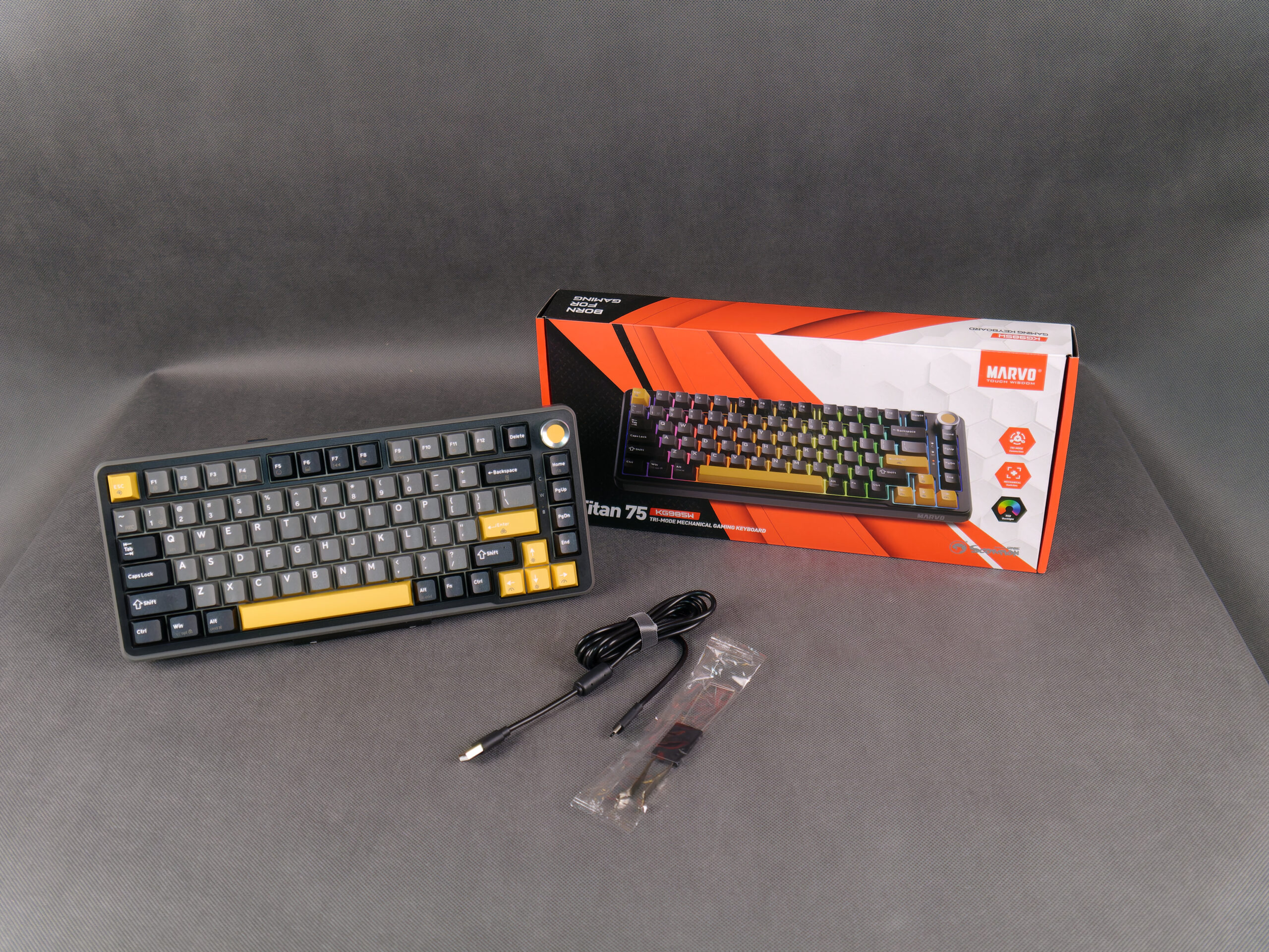 O tym, że na rynku peryferiów komputerowych robi się dość ciasno, nie trzeba nikomu mówić. Na naszym podwórku coraz szerzej pojawiają się produkty marek, które dotychczas były raczej dostępne wyłącznie na Aliexpress i stronach pochodnych. Prawdziwa walka zaczyna się jednak w najniższych budżetach, w końcu nie sztuką jest stworzyć dobry i drogi produkt, sztuką jest zaoferować to samo (lub ciut mniej), ale w maksymalnie niskiej cenie. I tutaj na salony wchodzi Marvo pokazując, że ostatnie słowo jeszcze nie padło. Marvo Titan 75 to właśnie takowy produkt. No i oczywiście, takie rzeczy jak połączenie bezprzewodowe, RGB, hotswap czy nasmarowane przełączniki nie robią już aż takiego wrażenia jak kiedyś — zgadzam się z tym.
